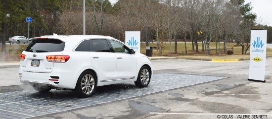 En effet, les dalles composées de cellules photovoltaïques enrobées de polymères se doivent de relever un triple défi : la solidité pour supporter le poids des quelques 2 000 véhicules qui empruntent chaque jour ce tronçon, la transparence pour capter la lumière du soleil et l’adhérence pour assurer un bon contact entre les pneus et la chaussée.